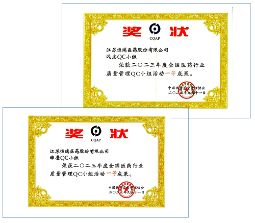 AG真人医药荣获2023年度全国医药行业质量管理QC小组活动一等奖